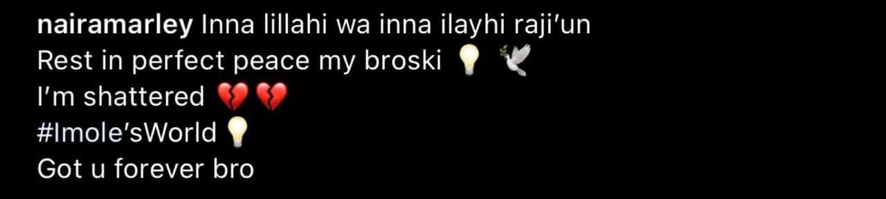 A few hours after the death of Mohbad, Naira Marley and some of his crew took to their Instagram story to share a broken heart emoji to express their sorrow over the death of Mohbad.