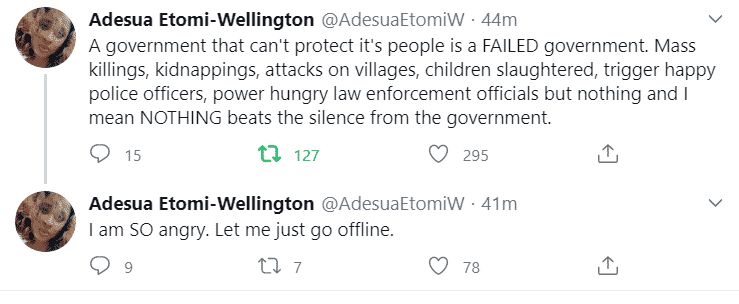A government that can’t protect it’s people is a FAILED government. Mass killings, kidnappings, attacks on villages, children slaughtered, trigger happy police officers, power hungry law enforcement officials but nothing and I mean NOTHING beats the silence from the government.