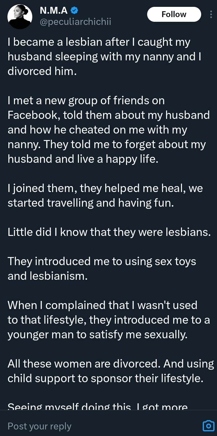 “I became lesbian after I caught my husband sleeping with my nanny” — Lady