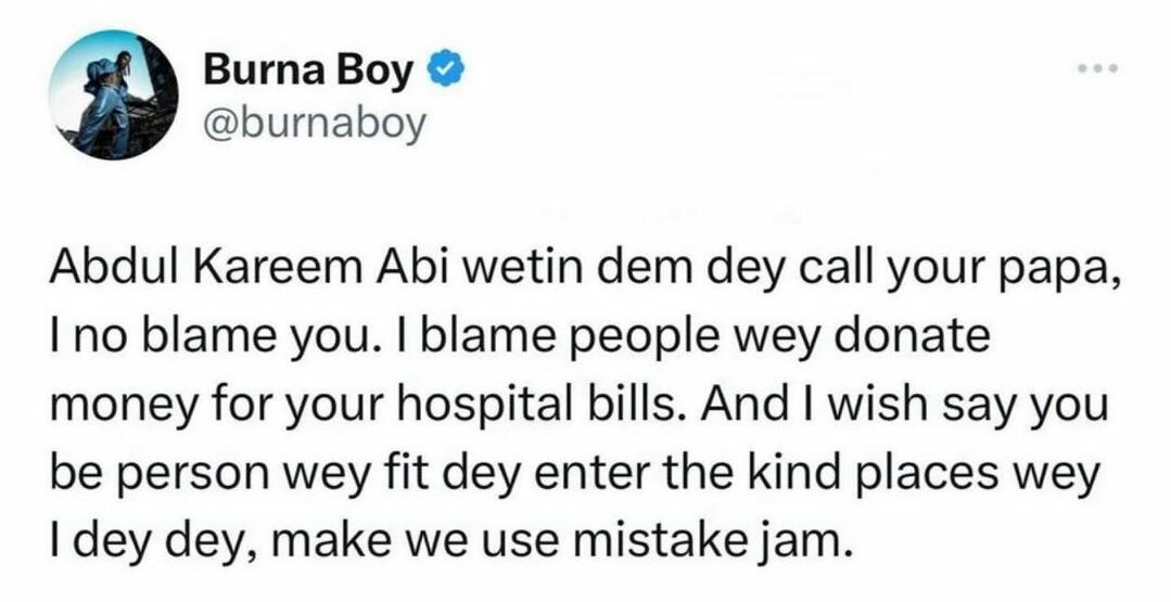 Burna Boy who has been triggered by the comment of Eedris took to his Twitter to drag the artist saying that he blames people who showed solidarity by donating to his medical bills.