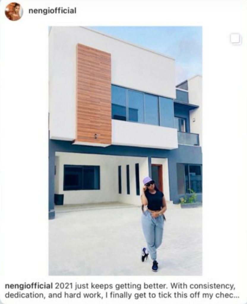 As she’s seen boasting that she built a house with her hard earned money before entering into Big brother Naija.