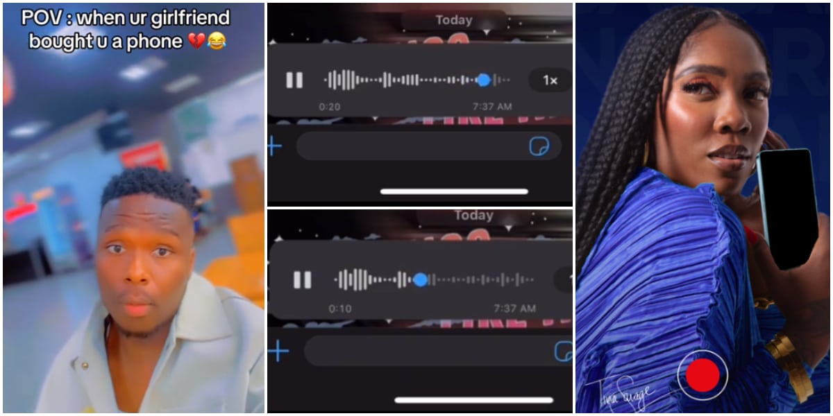 In the voice note, conducted in Pidgin, the girlfriend expressed her displeasure, questioning why the man chose Tiwa Savage as his wallpaper when she had gifted him the iPhone.