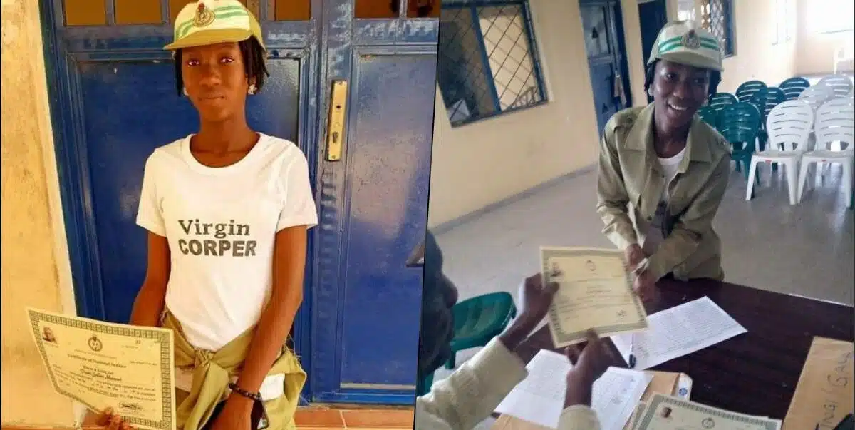 A 20-year-old corper celebrates the completion of her one-year compulsory service while emphasizing returning home as a virgin.