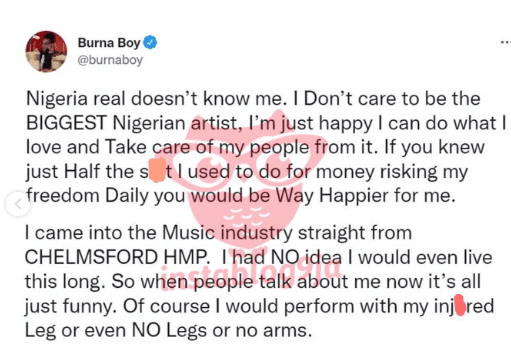Odogwu maintained that he had no idea that he would live this long, and does not care about being the biggest artist in Nigeria. He is only to be doing what he loves.