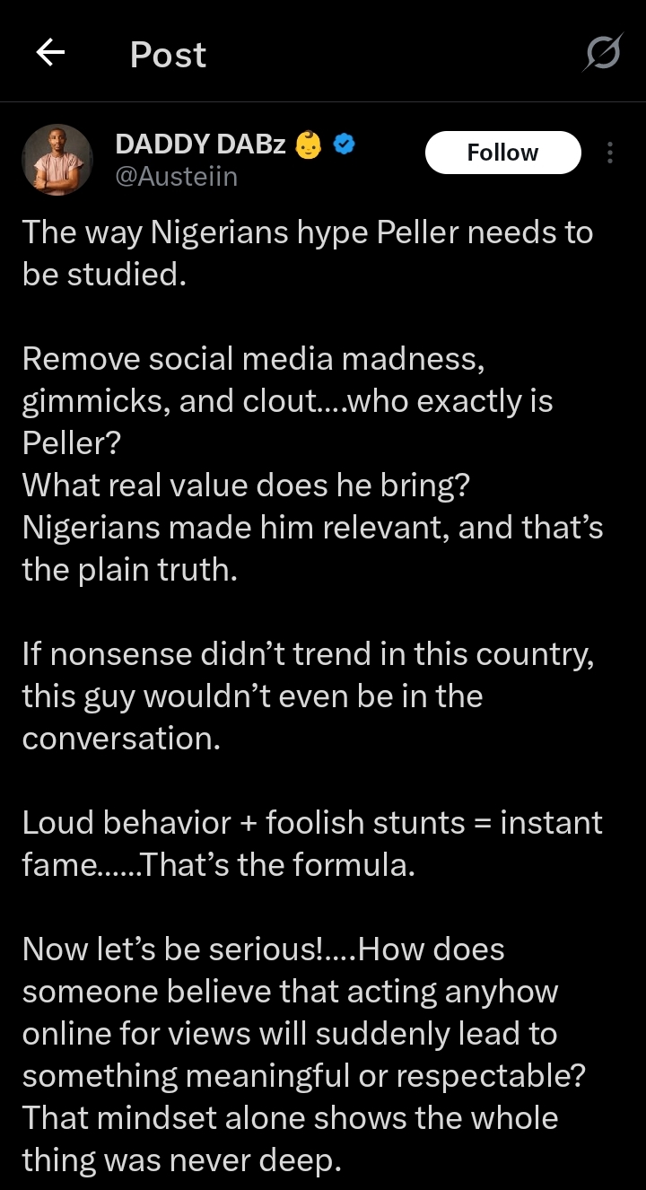 The way Nigerians hype Peller needs to be studied.Remove social media madness, gimmicks, and clout who exactly is Peller?