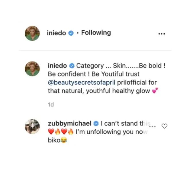 The reaction of Zubby Michael however stood out amongst others as the actor vowed to unfollow her over her hotness.
