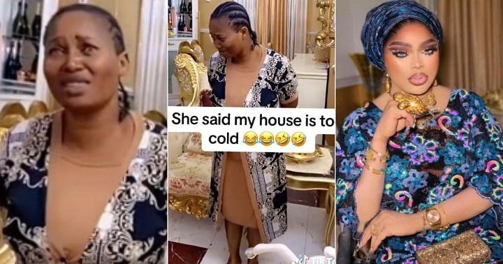 In the video clip he shared, the housekeeper begged Bobrisky to put off the air conditioner.