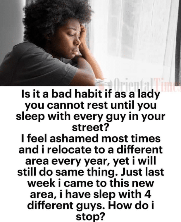 A Nigerian lady has taken to the internet to share her heartfelt struggle with a claimed promiscuity addiction, stating that she sleeps with every guy in her street, and is seeking advice from online communities.
