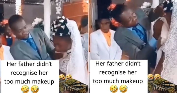 A Nigerian father wiped his daughter’s makeup off on her wedding day due to his inability to recognise her.