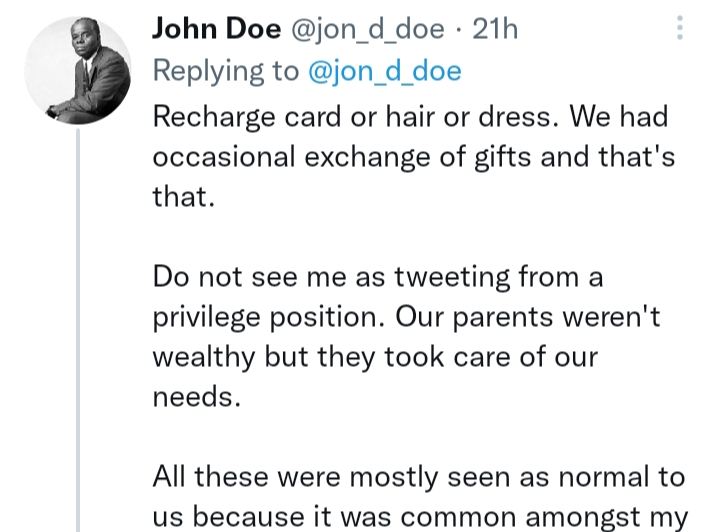 Do not see me as tweeting from a privilege position. Our parents weren’t wealthy but they took care of our needs.