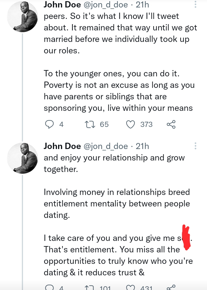 He told his tale on Twitter in the hopes of encouraging youths people to avoid including money in their relationships since it promotes feeling of entitlement.