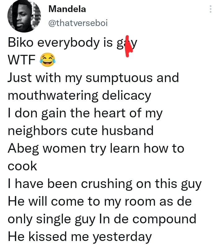 The man identified on Twitter as @thatverseboy, revealed that he’s has been crushing on his neighbor’s husband for quite sometime.