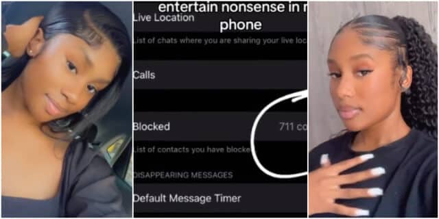 As evidence of her claim, the lady shares a screenshot on her phone displaying the figure “711” representing the number of blocked contacts.