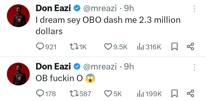 “I dream sey OBO dash me 2.3 million dollars”