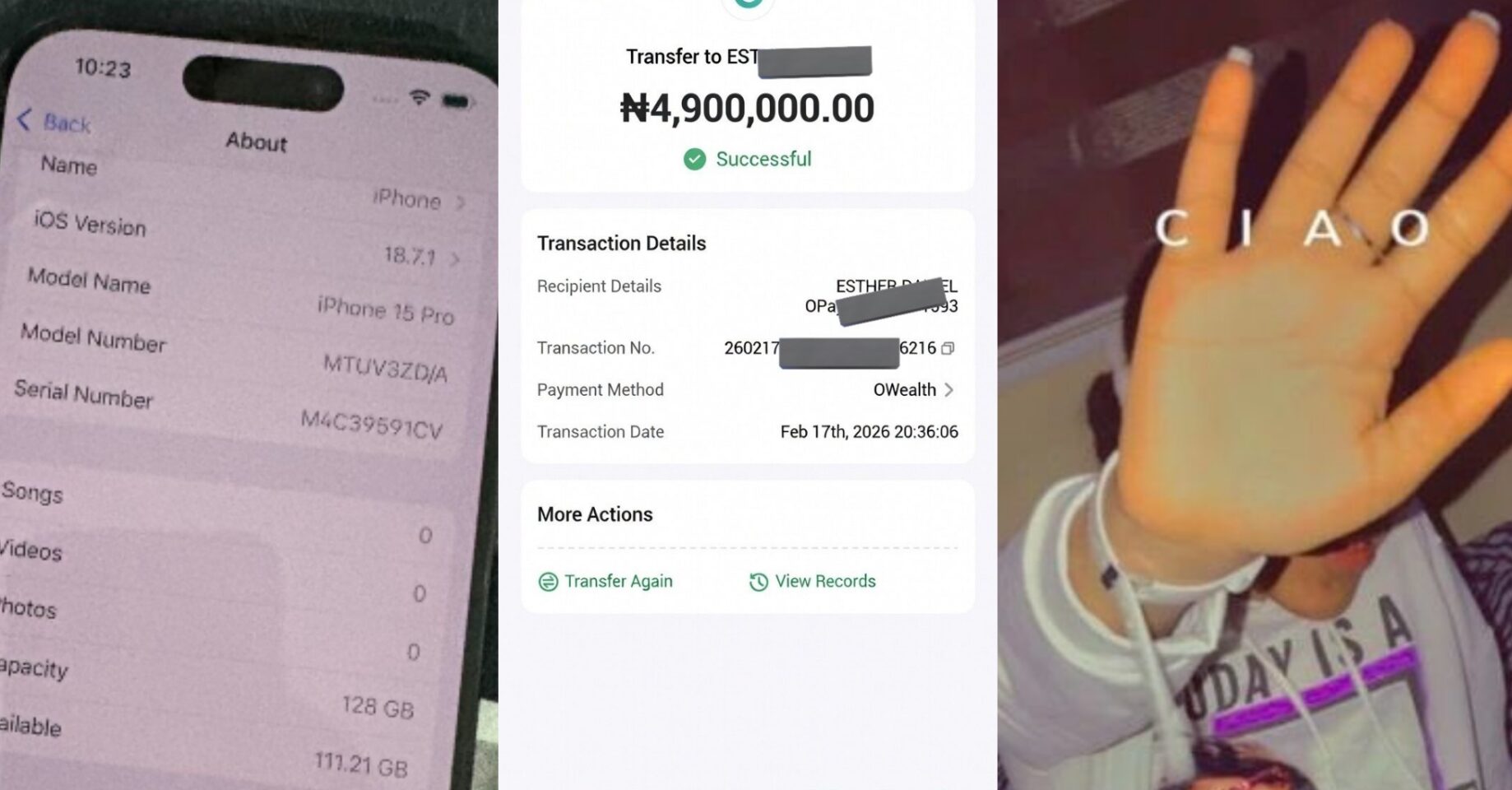 While he was asleep, she transferred ₦4.9 million from his Opay account to her personal account and took his second phone, an iPhone 15 Pro Max.