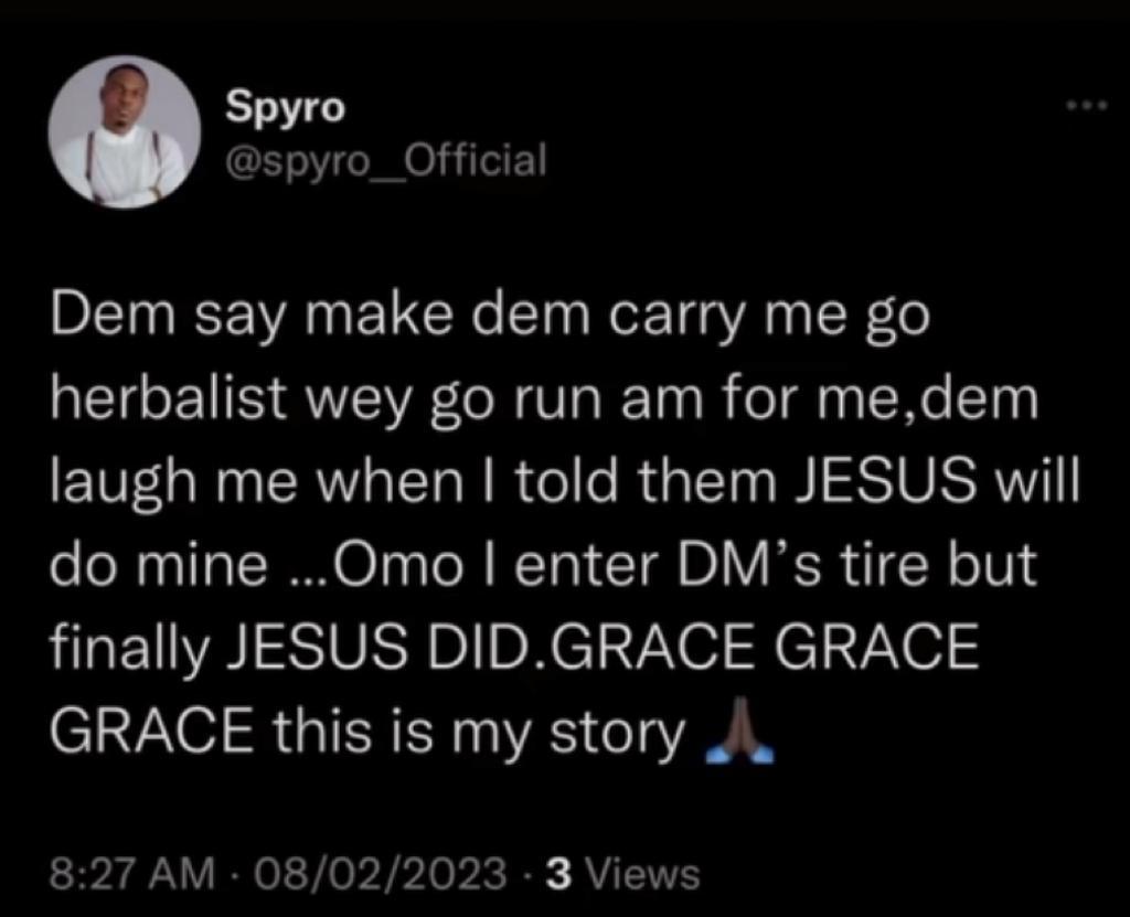“I enter DM’s tire but finally Jesus did” – Spyro shares success story