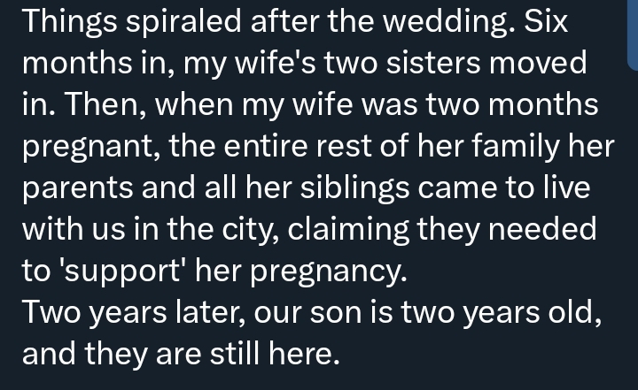 “I feel…” — Man cries out as wife’s family completely moves into his house