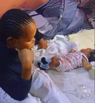 “I feel your pain” – Nigerian mother cries as baby rejects small bed, sleeps on big mattress