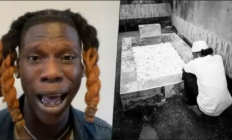 In a recent post via his Instagram page, Seyi Vibes shared a photo of himself kneeling beside her grave, accompanied by a touching caption.