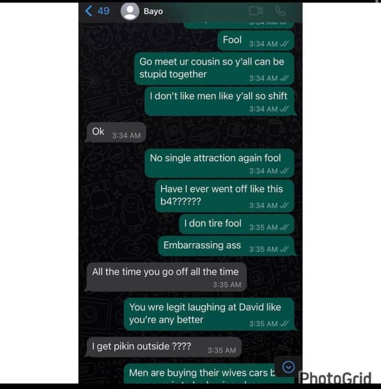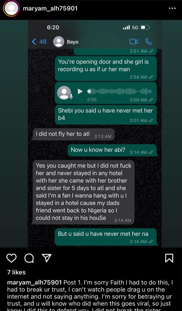 The chat was leaked by an IG user identified as @maryam_alh75901 who claimed to be a friend to B-Red’s wife.