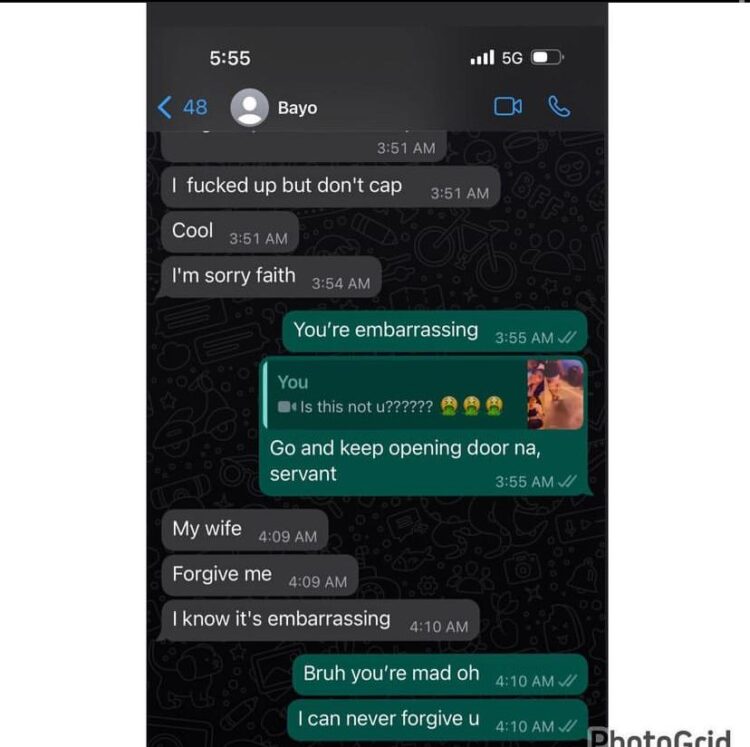 In the chat which sirfaced online, Faith dragged her husband for opening the door for a lady and spending time with her in Atlanta.
