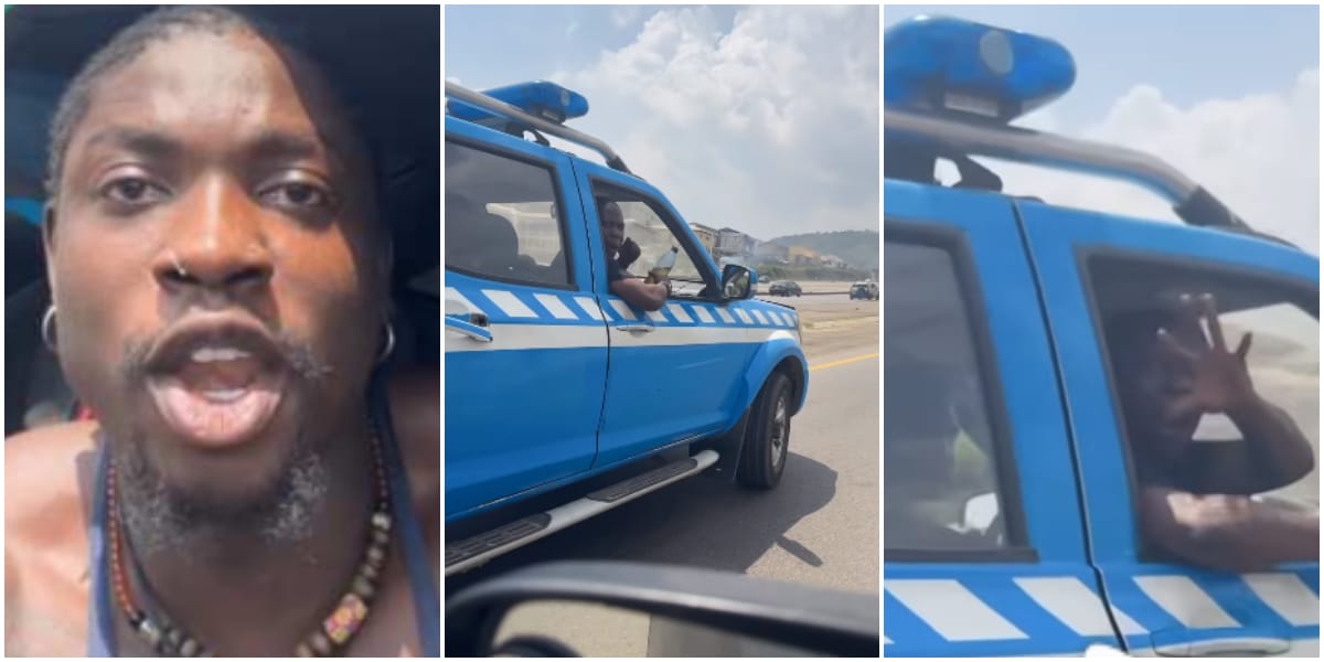 “I go beat you” – Moment Verydarkman confronts Road Safety officer for parking their van wrongly
