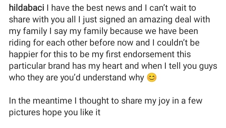 According to Hilda, she signed an incredible deal with a brand that is dear to her heart.
