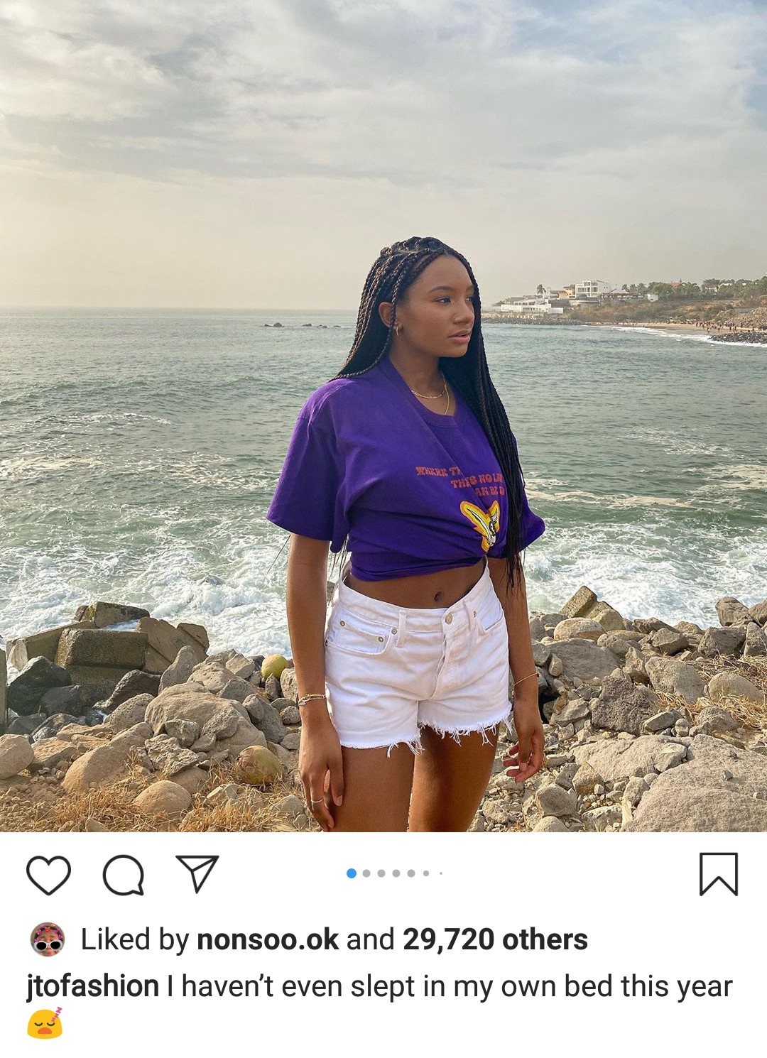 Fashionista and actress Temi Otedola has revealed to the public that she hasn’t slept in her own bed since we started the year 2020 and it has sent curious minds into wild thoughts.
