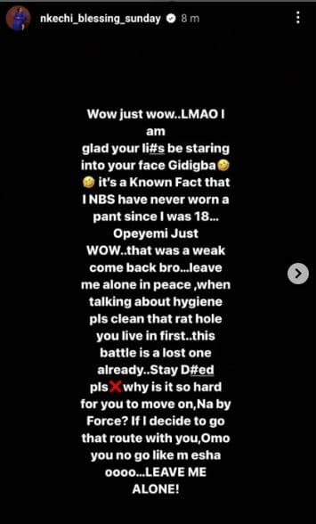“I haven’t worn pant since I was 18” – Nkechi Blessing reacts after ex-lover, Opeyemi accused her of wearing an underwear for 3 days (Video)