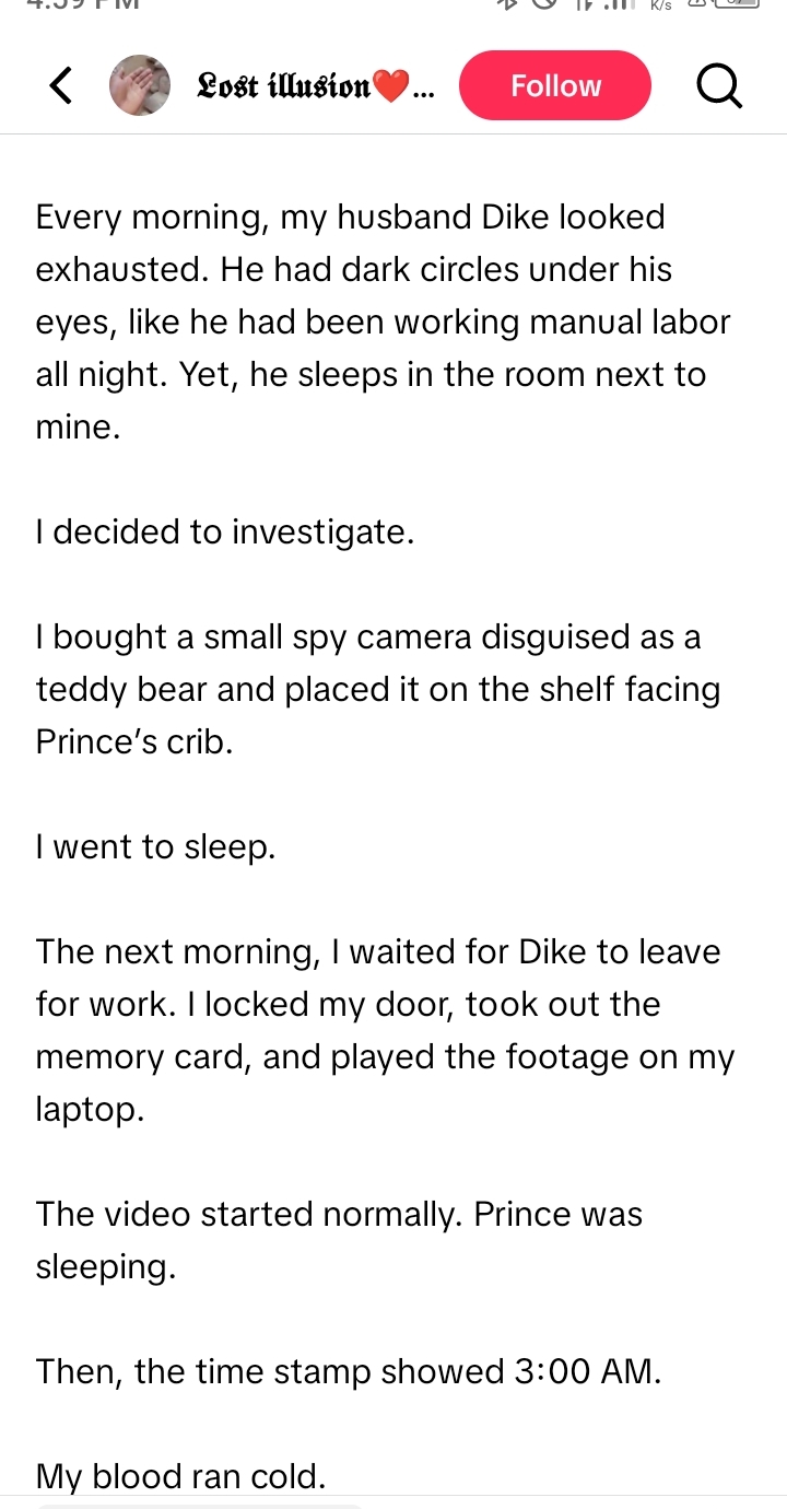 A lady has shared what she caught her 6‑month‑old son doing around 3 a.m., which led her to flee barefoot.