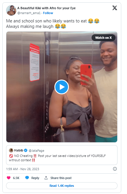 In the video, the young man can be seen engaging in lighthearted banter with @narnarh_ama1, who affectionately labelled him her ‘school son.’