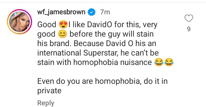 Popular transvestite, James Brown reacts to popular singer, Davido unfollowing his aide, Israel DMW over the alleged remark he made about influencer, Enioluwa.