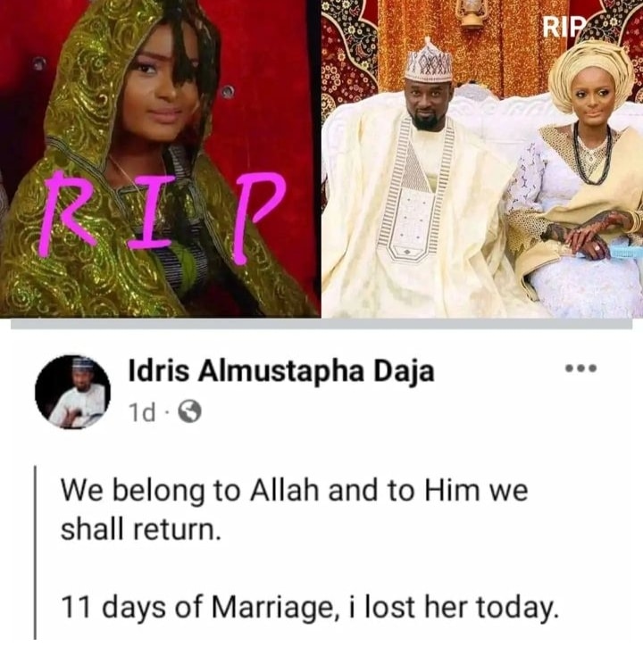 A Nigerian man identified as Idris Elmustapha Daja, has shared his pain online as he loses wife just 11 days after their wedding.