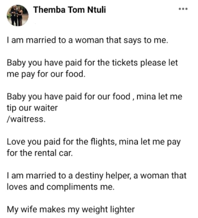 “I married my destiny helper, she makes my weight lighter” – Man brags about wife footing part of their bills