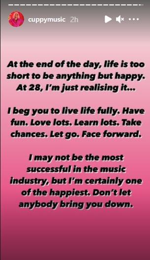 The artist took to her Instagram stories to remind herself that she’s 28 years old as she reminisces on all her happy moments in her career and personal life.
