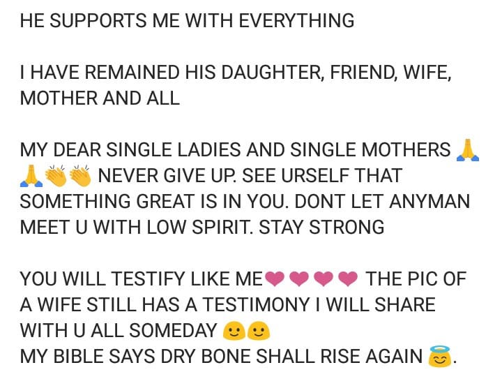 In her final words, she advised singles ladies out there to keep up hope and believe that if she could succeed, they too could.