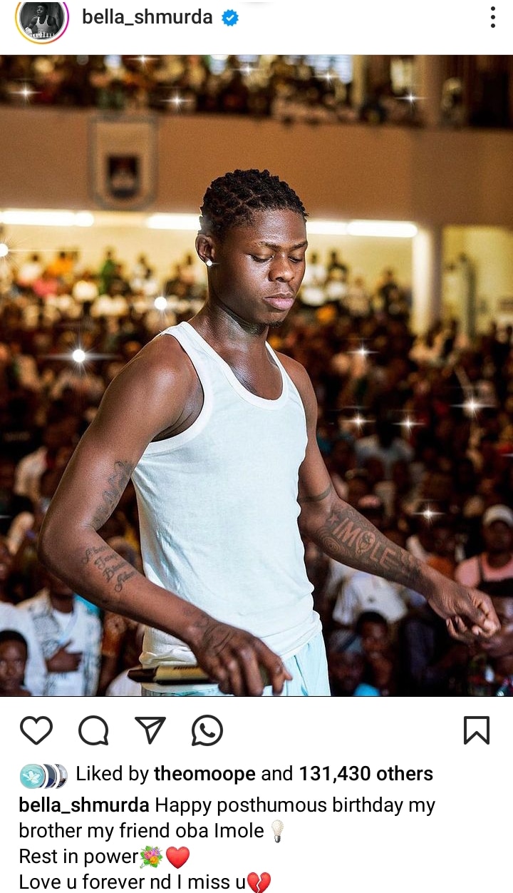 Popular singer, Bella Shmurda pens an emotional posthumous birthday message for his good friend and colleague, Mohbad who would have been 28 today.