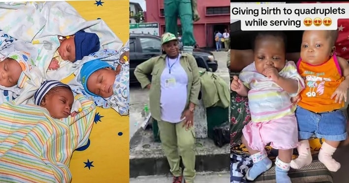The ex corps member with the handle @momof4quadraplet on TikTok stated in a video that she delivered her four children when she was still serving her fatherland.