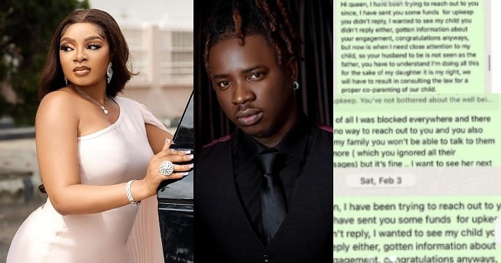 He said; “Hi Queen I have been trying to reach out to you, I sent you some funds for upkeep you didn’t reply, I wanted to see my child you didn’t reply either, got information about your engagement, congratulations anyways but now is when I need close attention to my child, so your husband to be is not seen as the father, you have to understand am doing all these for the sake of my daughter it is my right, we will have to result in consulting the law for a proper co-parenting of our child. Congratulations once again.”