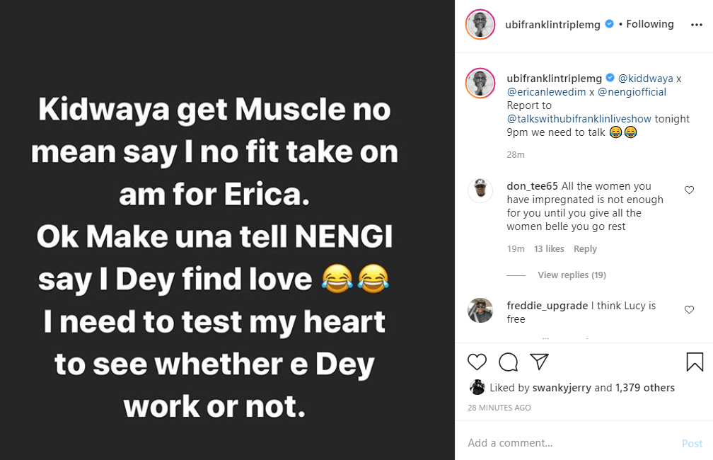 “I need to test my heart to see whether it still works” – Ubi Franklin says as he shoots his shot at BBNaija’s Nengi and Erica