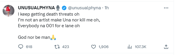 Phyna has come online to cry out over getting death threats. She begged online citizens not to take her life as she’s not an artist.