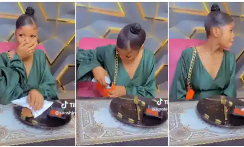 “I no fit leave am” – Slay queen spotted packing leftover chicken in a restaurant (Video)