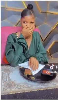 The young lady who took to her social media page got a lot of people laughing after she was seen behind the table where she ate looking to see if she was being watched by anyone before she goes into action.