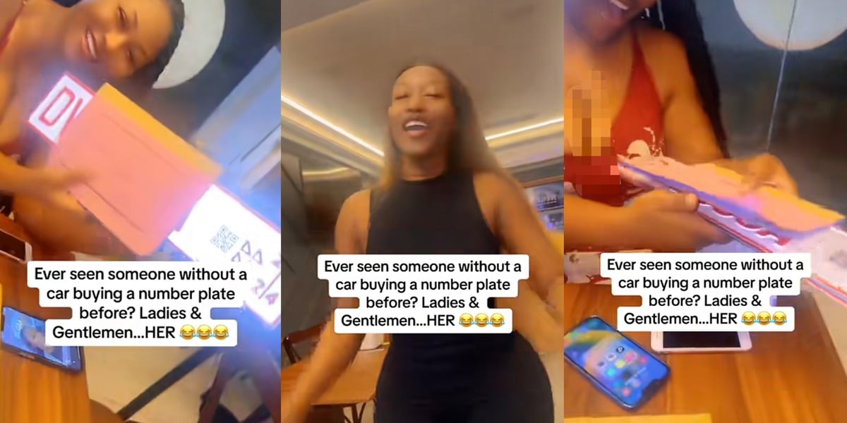 A beautiful Ghanaian woman stunned many on social media as she purchased a license plate despite not owning a car at all.