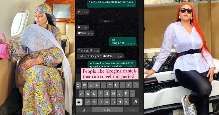 In the screenshot, Regina Daniels made it clear that she was enjoying wealth as she paid for a full $9000 charter flight and also planned to book a jet.