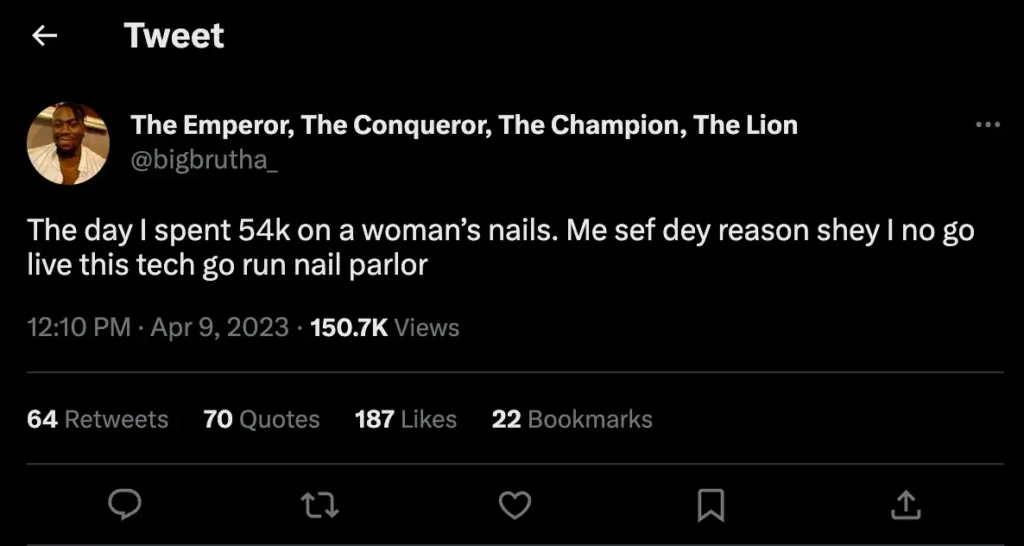 A Nigerian man says he might dump the tech business to become a nail stylist after paying N54,000 for his woman’s nails.