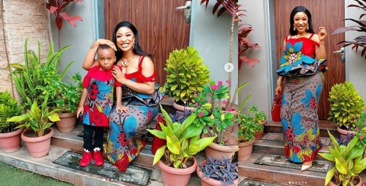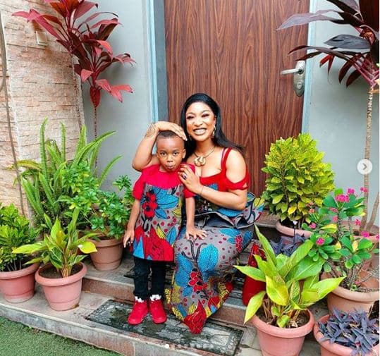 The actress made this known while warning those teaching her son Pidgin English to stay off.