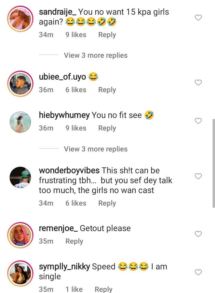wonderboyvibes wrote: ” This sh!t can be frustrating tbh… but you sef dey talk too much, the girls no wan cast”