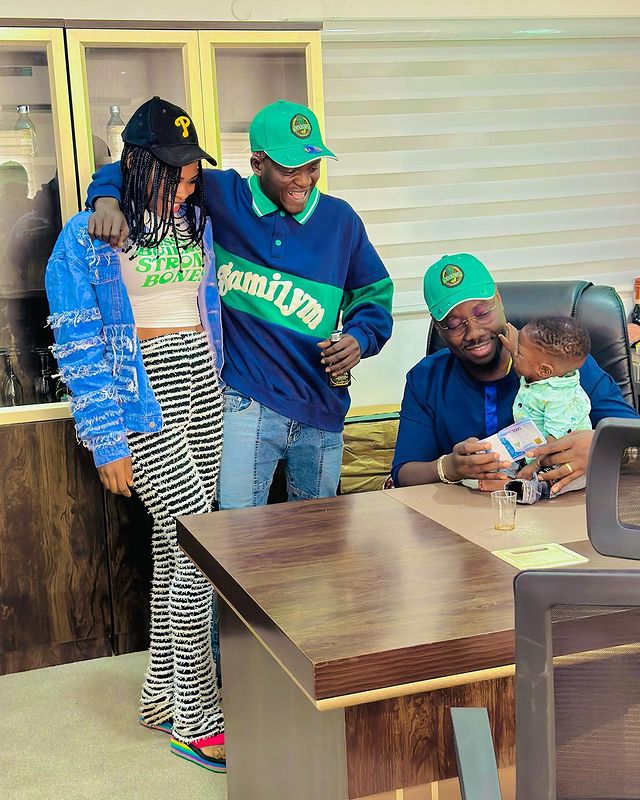 Omobewaji Ewatomi, dotes on her musician husband, Portable, as he takes her and their child to visit billionaire businessman, Obinna Iyiegbu a.k.a Obi Cubana.