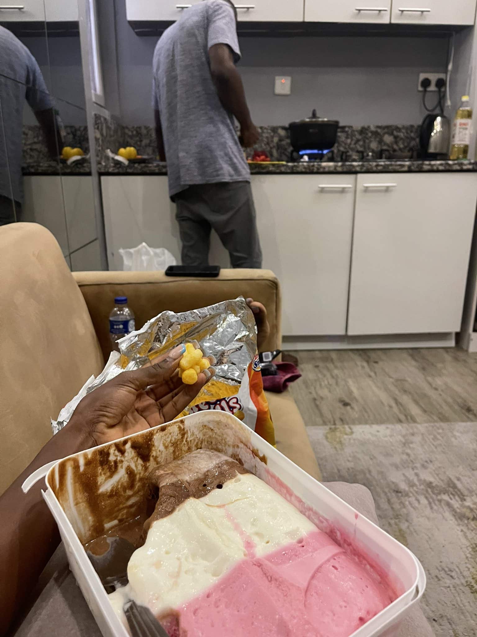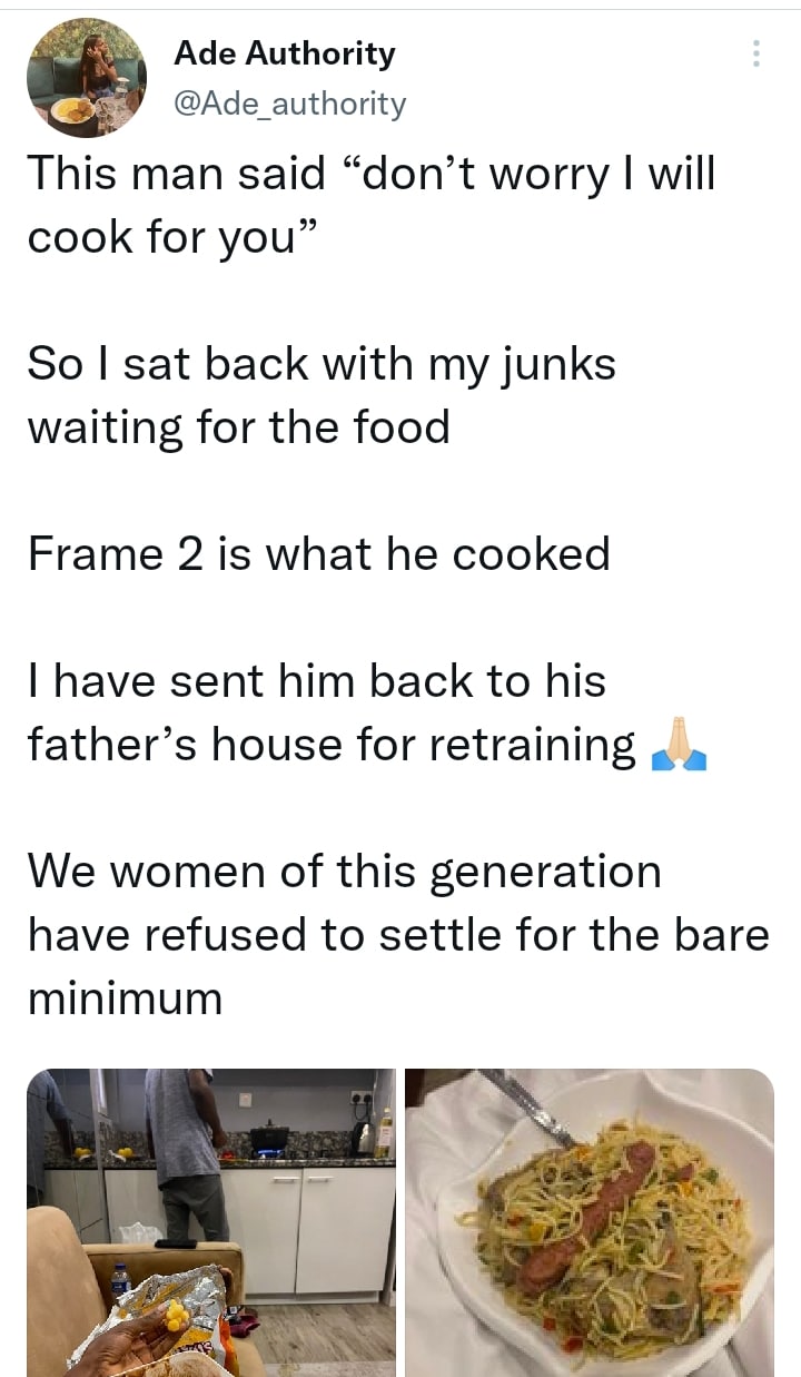 According to the lady identified on Twitter as Ade Authority, her boyfriend had made the offer of cooking her something.
